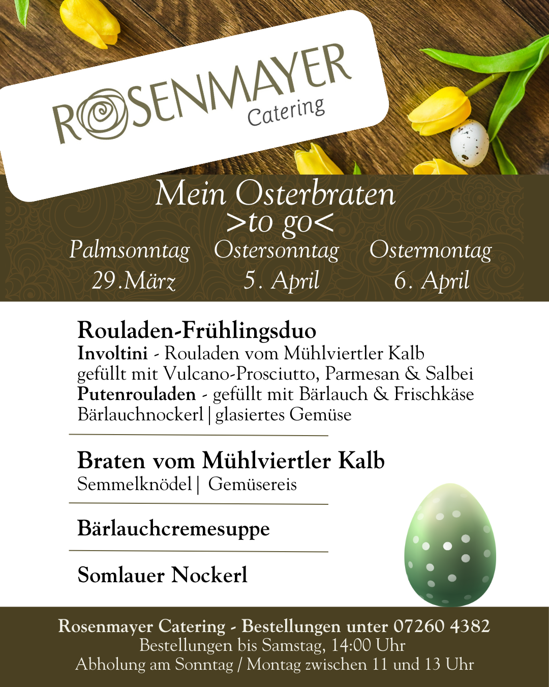 Sonntagsbraten – Sonntags gibt’s unsere traditionelle Braten, frisch zubereitet zum Abholen und Genießen für zu Hause. Mit dem eigenen Geschirr oder mit unserer Sonntagsbraten-Transportbox.
